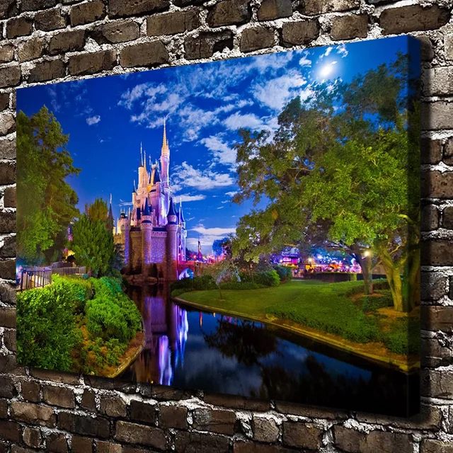 H2057 Malam Castle Cahaya Sungai Pohon Pemandangan Hd Kanvas Cetak | Download Gambar