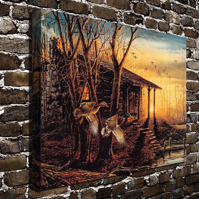 1303 Terry Redlin Pagi Retreat Hewan Pemandangan Hd Kanvas Cetak | Download Gambar
