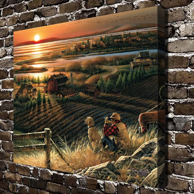 Z373117 Terry Redlin Bidang Anjing Hewan Pemandangan Hd Kanvas | Download Gambar