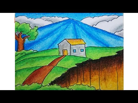 Cara Menggambar Pemandangan Rumah Dan Gunung Smotret Onlajn Na | Download Gambar